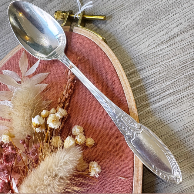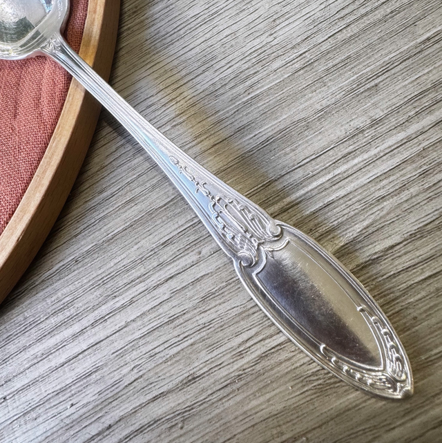 Cuillère dessert à personnaliser,14cm ARGENT modèle style empire des années 20, manche joliment travaillé ⚠️Pour la personnalisation il suffit de me l’indiquer dans l’encart prévu à cet effet MESSAGE A L’ATTENTION DU COMMERÇANT(au dessus de la livraison dans votre panier)