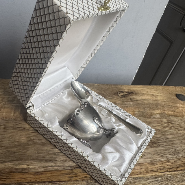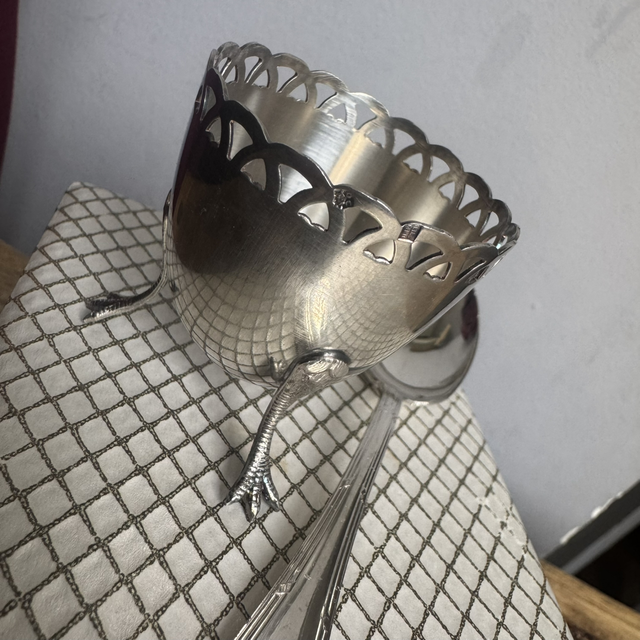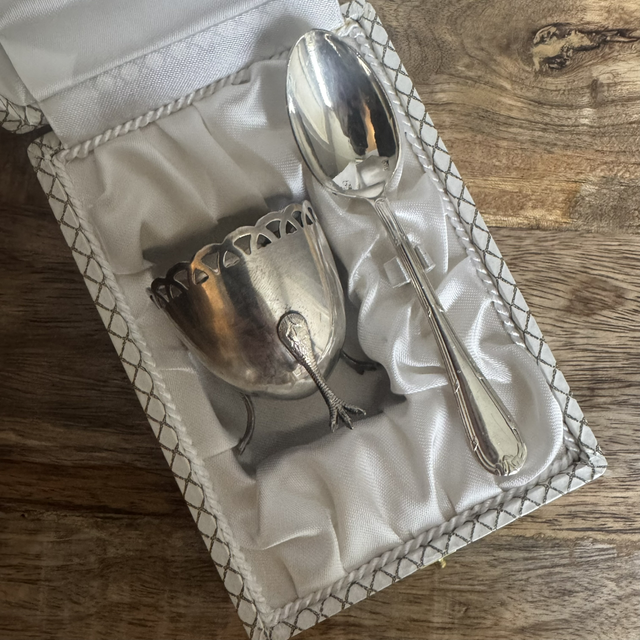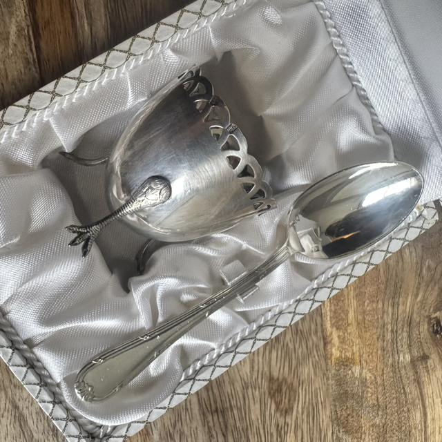 Ensemble coquetier, et cuillère à oeuf en Argent des années 40 Dans son coffret d’origine