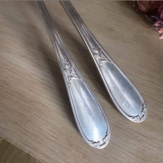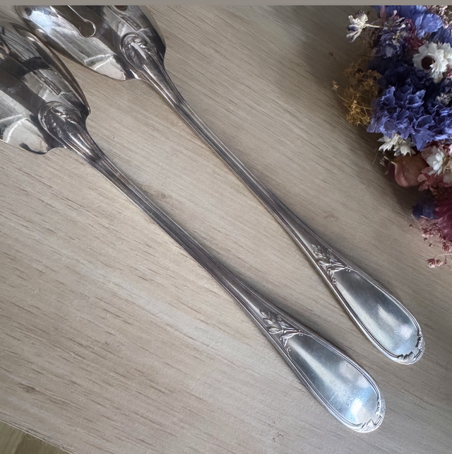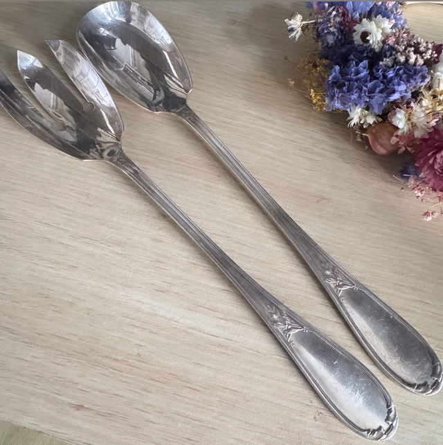 Beaux couverts à salade argent années 50,