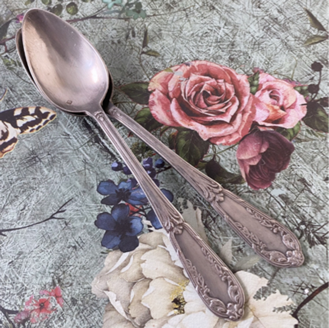 2 Cuillères à personnaliser,14cm en étain manche joliment travaillé