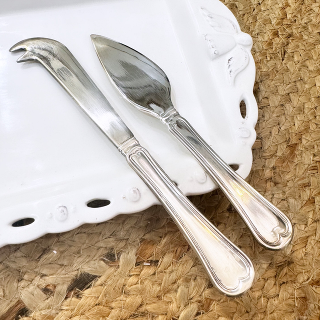Set de 2 pièces plaqué argent pour le fromage La personnalisation peut se faire sur les 2 pièces, à me fournir dans l’encart « message au commerçant » quand vous êtes dans le panier Livré dans sa jolie pochette en toile de Jouy