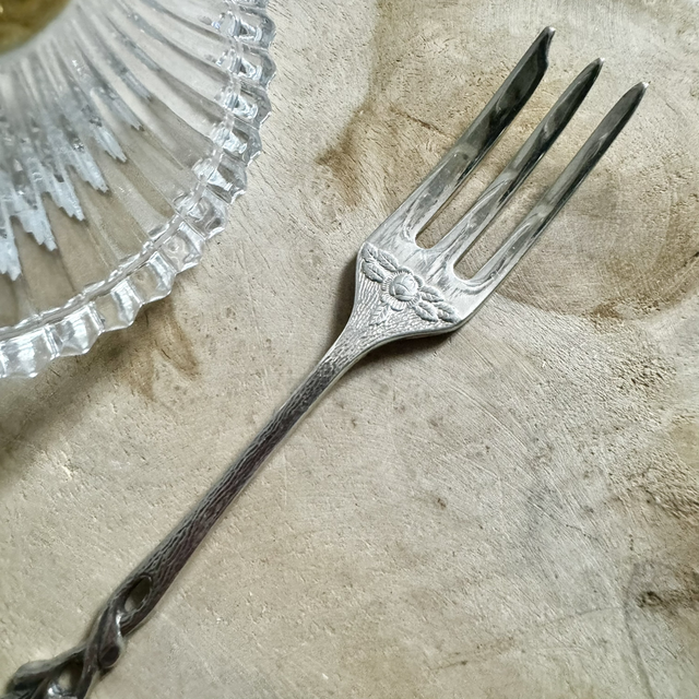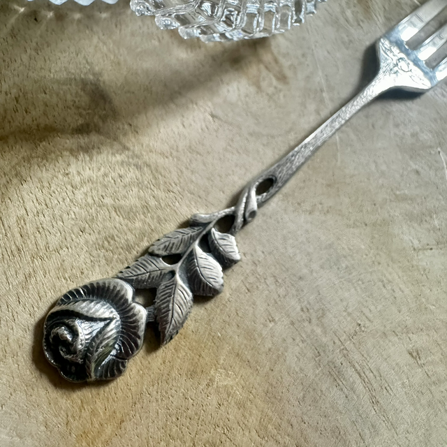 Lot 6 fourchettes à dessert sur le thème de la rose vintage des années 40 plaqué argent Modèle rare