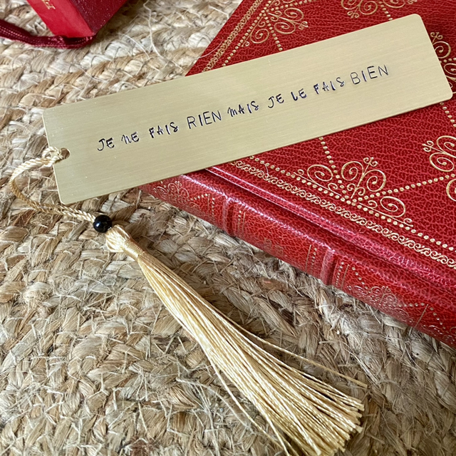 Joli marque page en laiton doré avec pompon.