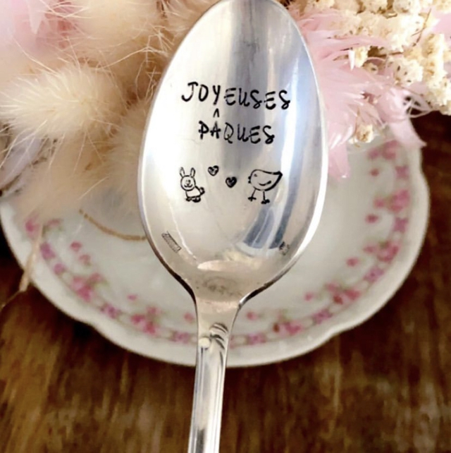Cuillère en argent « joyeuses Pâques mon lapin »