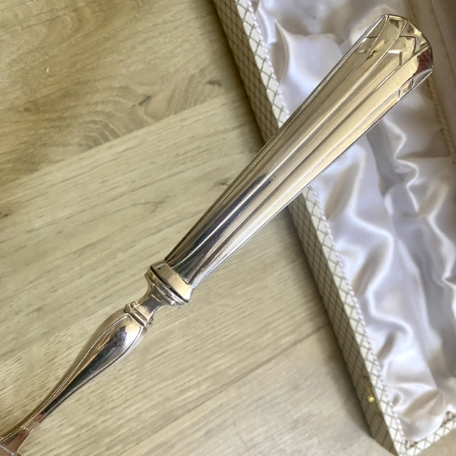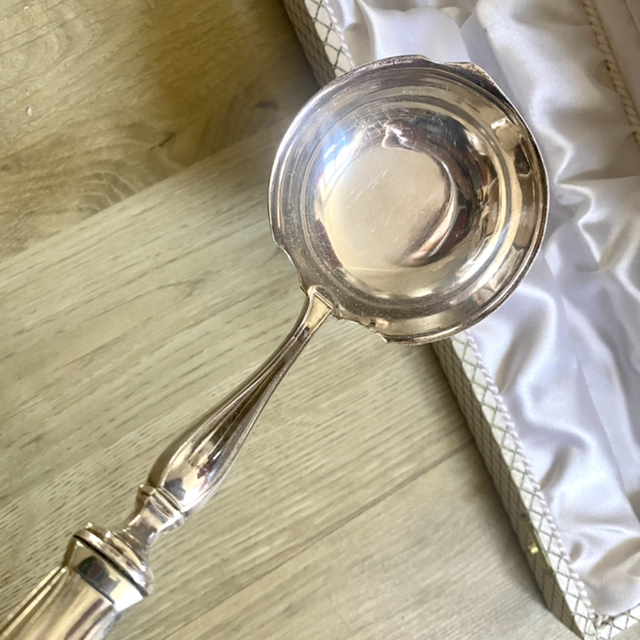 Jolie louche à gaufres ou à pancakes, en argent des années 50