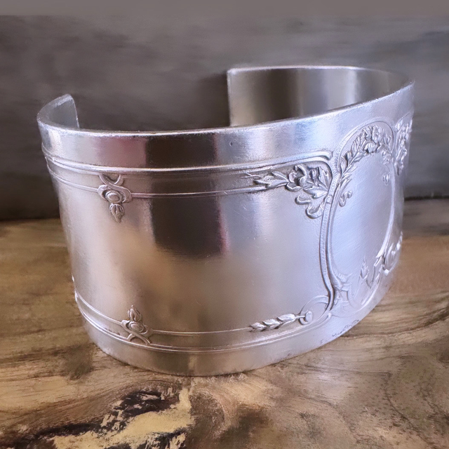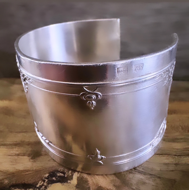Joli bracelet manchette en argent fait entièrement à la main à partir d’un rond de serviette des années 40 MODÈLE RARE