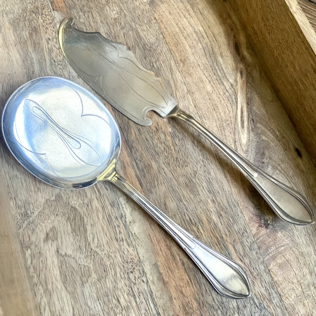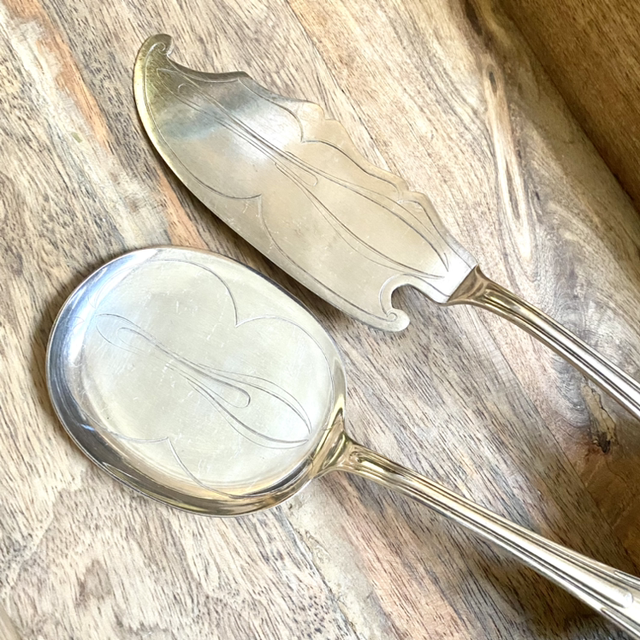 12 cuillères , une pelle à gâteau et une cuillère de service